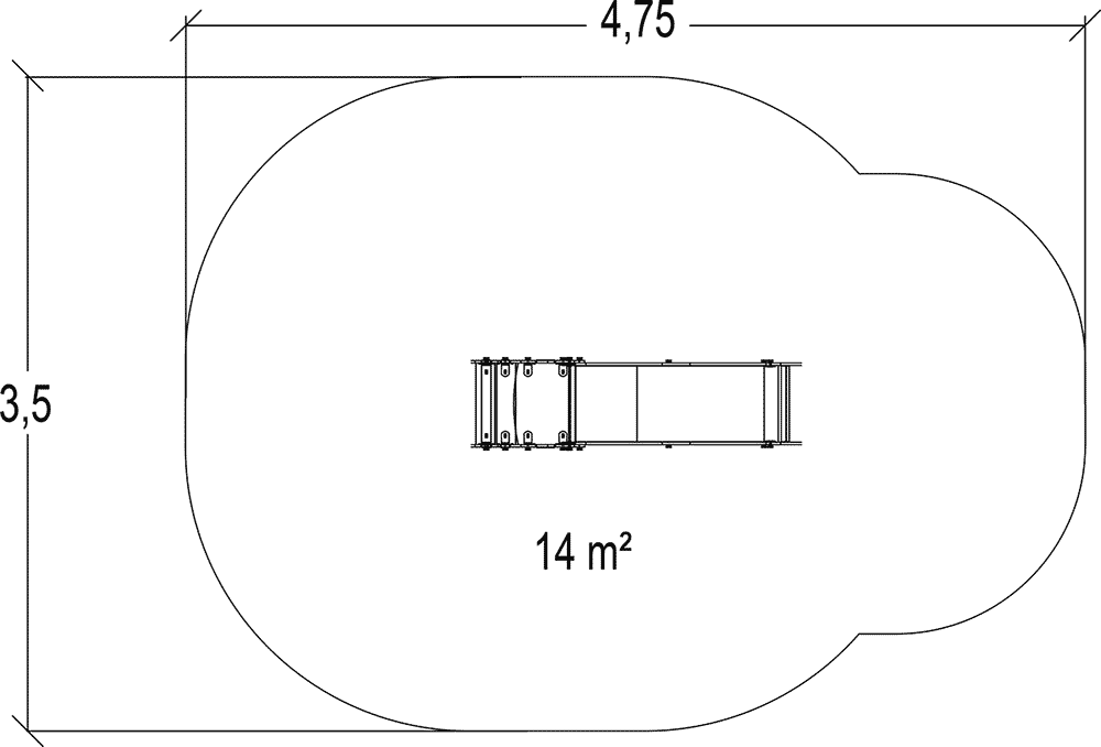 Las dimensiones del módulo son: 1,75 m de longitud, 0,46 m de ancho, 1,30 m de alto. La altura de caída libre (ACL) es de 1,00 m.