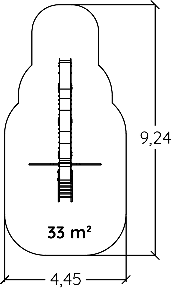 Las dimensiones del módulo son: 5,29 m de longitud, 2,66 m de ancho, 3,18 m de alto. La altura de caída libre (ACL) es de 2,20 m.