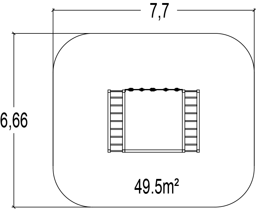 Las dimensiones del módulo son: 3,52 m de longitud, 2,44 m de ancho, 2,44 m de alto. La altura de caída libre (ACL) es de 2,40 m.