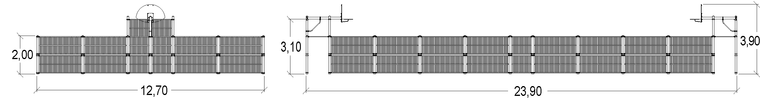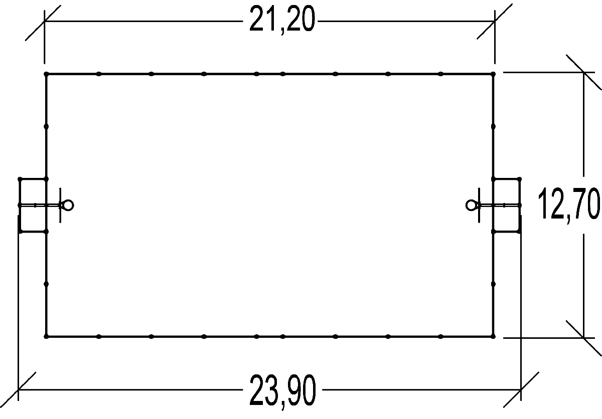 Las dimensiones del módulo son: 23,90 m de longitud, 12,70 m de ancho, 3,90 m de alto.
