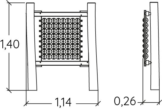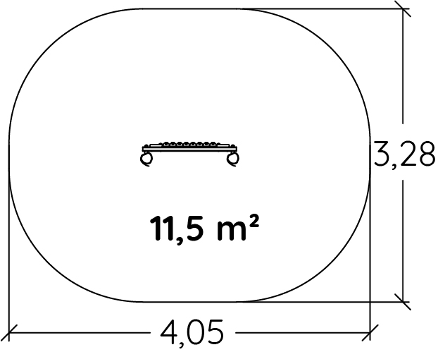 Las dimensiones del módulo son: 1,14 m de longitud, 0,26 m de ancho, 1,40 m de alto. La altura de caída libre (ACL) es de 0,60 m.