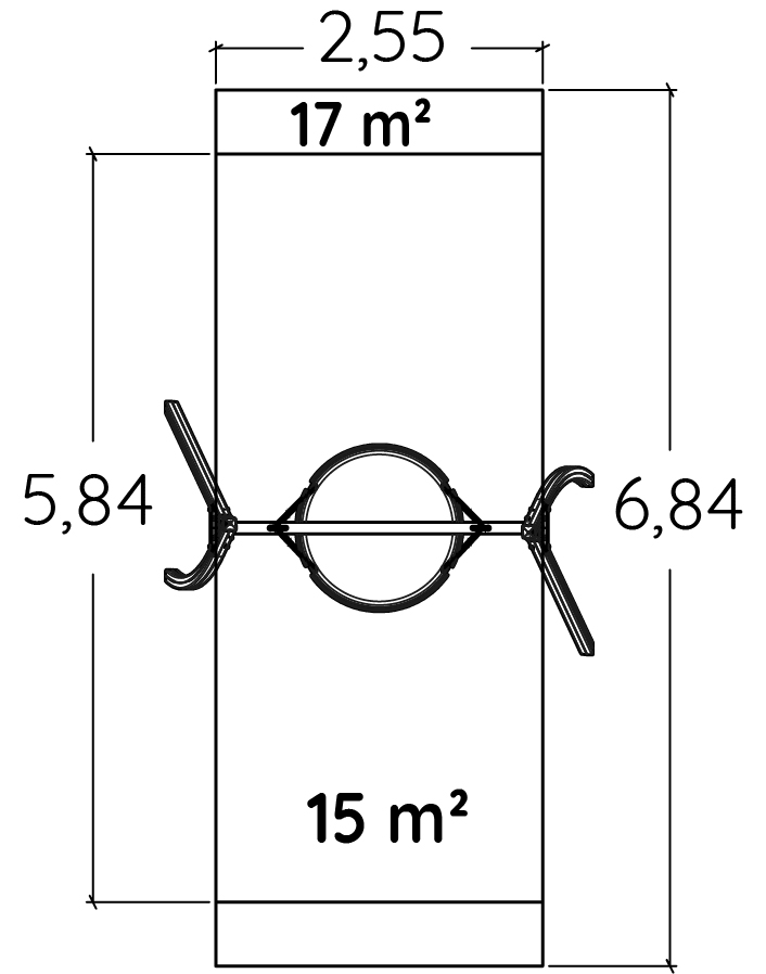 Las dimensiones del módulo son: 3,34 m de longitud, 1,98 m de ancho, 2,60 m de alto. La altura de caída libre (ACL) es de 1,46 m.