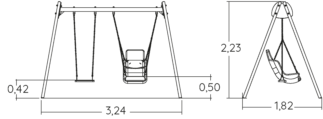 Hemos creado la referencia J439 en nuestra gama "Columpios". Se puede acceder a este módulo desde 1 año. Tiene una capacidad máxima de 2 usuarios.
