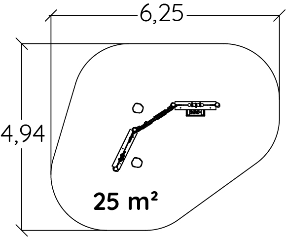 Las dimensiones del módulo son: 3,00 m de longitud, 1,80 m de ancho, 2,60 m de alto. La altura de caída libre (ACL) es de 0,60 m.