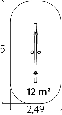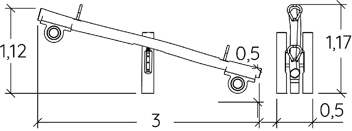 Las dimensiones del módulo son: 3,00 m de longitud, 0,50 m de ancho, 1,12 m de alto. La altura de caída libre (ACL) es de 1,17 m.