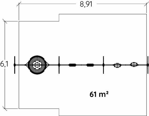 Las dimensiones del módulo son: 9,40 m de longitud, 1,20 m de ancho, 2,60 m de alto. La altura de caída libre (ACL) es de 1,55 m.