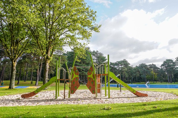 Los postes, 95 x 95 mm, son de acero galvanizado pintado garantizando la longevidad y la robustez de los juegos.