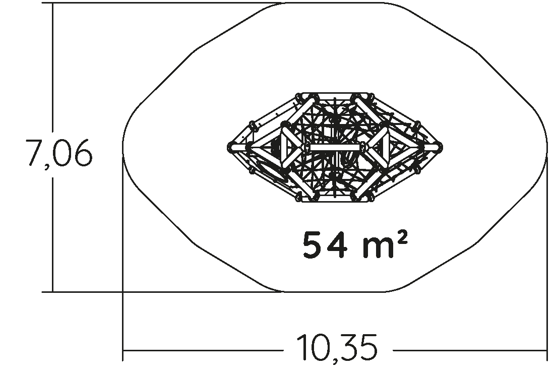 Las dimensiones del módulo son: 5,24 m de longitud, 2,66 m de ancho, 3,25 m de alto. La altura de caída libre (ACL) es de 2,50 m.