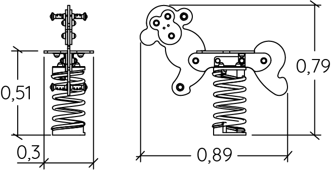 Las dimensiones del módulo son: 0,89 m de longitud, 0,30 m de ancho, 0,79 m de alto. La altura de caída libre (ACL) es de 0,60 m.