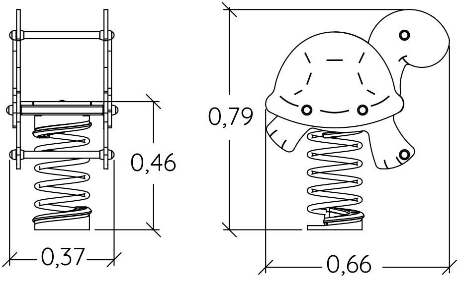 Las dimensiones del módulo son: 0,66 m de longitud, 0,37 m de ancho, 0,79 m de alto. La altura de caída libre (ACL) es de 0,60 m.